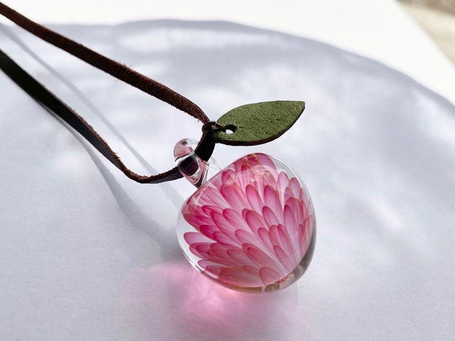 このページは【W様オーダー専用ページ】です。 《蕾のペンダント》 花びらはピンクのグラデーション。 お花の蕾をモチーフに製作しました。 萼が開いて今にも花が咲きそうな様子を表現しました。 萼の部分は幾重にも色ガラスを重ね立体的かつ全体のフォルムもユニークな形状です。 2022 アメリカのガラス専門誌『Glass Line』掲載(全 6 頁) ペンダントトップ寸法: (縦)約4.51cm×(横)約2.1cm×(奥行)約2.1cm 紐(レザーコード):黒色/約80cm(アジャスター約5.5cm) 素材:ボロシリケイトガラス、レザーコード他 紐(レザーコード)は焦茶色に変更できます。 ギフトボックスに入れて梱包します。